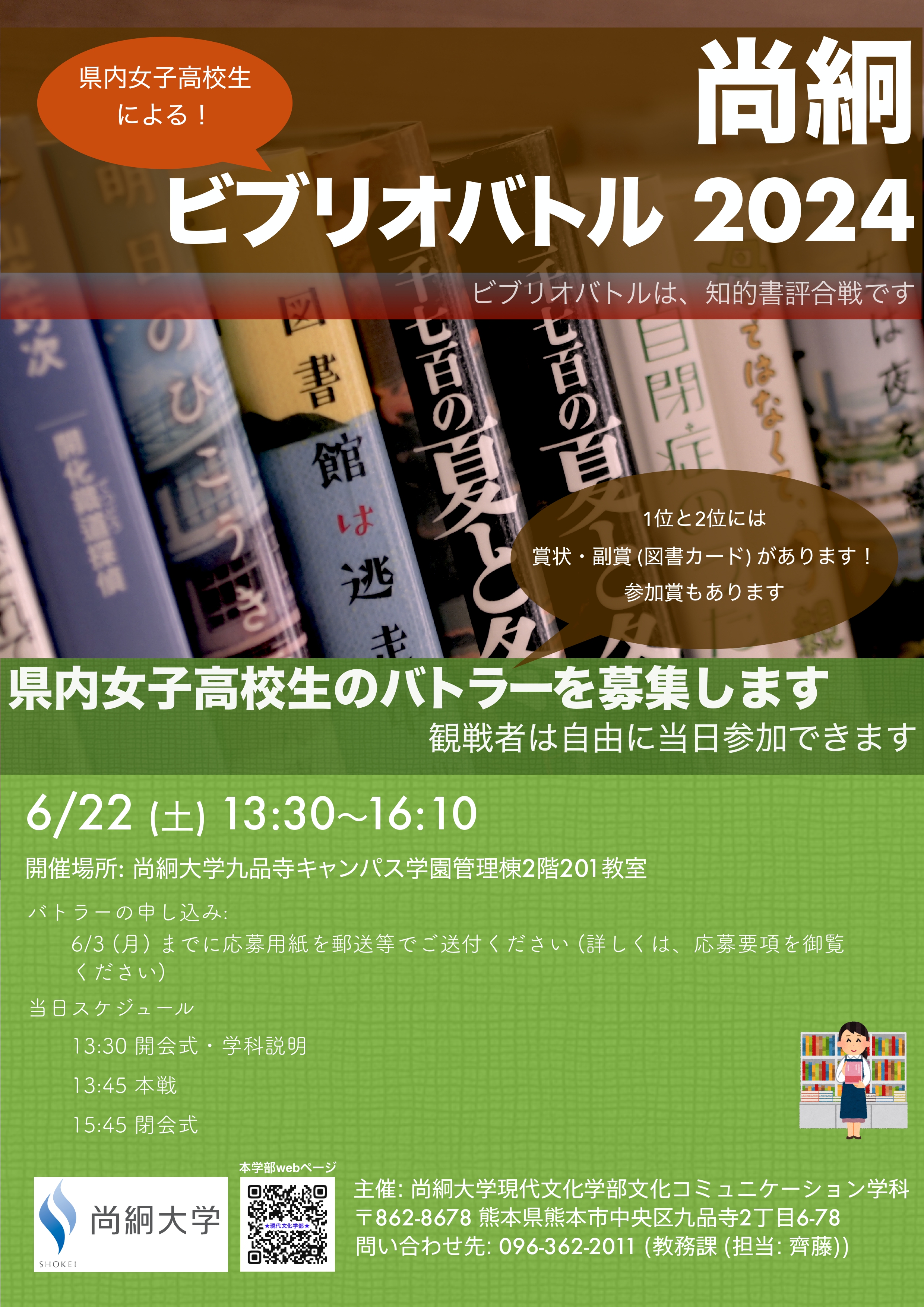 バトラーとして熊本県内の女子高校生たちが自分のお勧めする本を紹介してくれますので、高校生たちのお勧めの本がどのような本なのか、またどのように本を紹介してくれるのか、ぜひ会場でご覧ください!