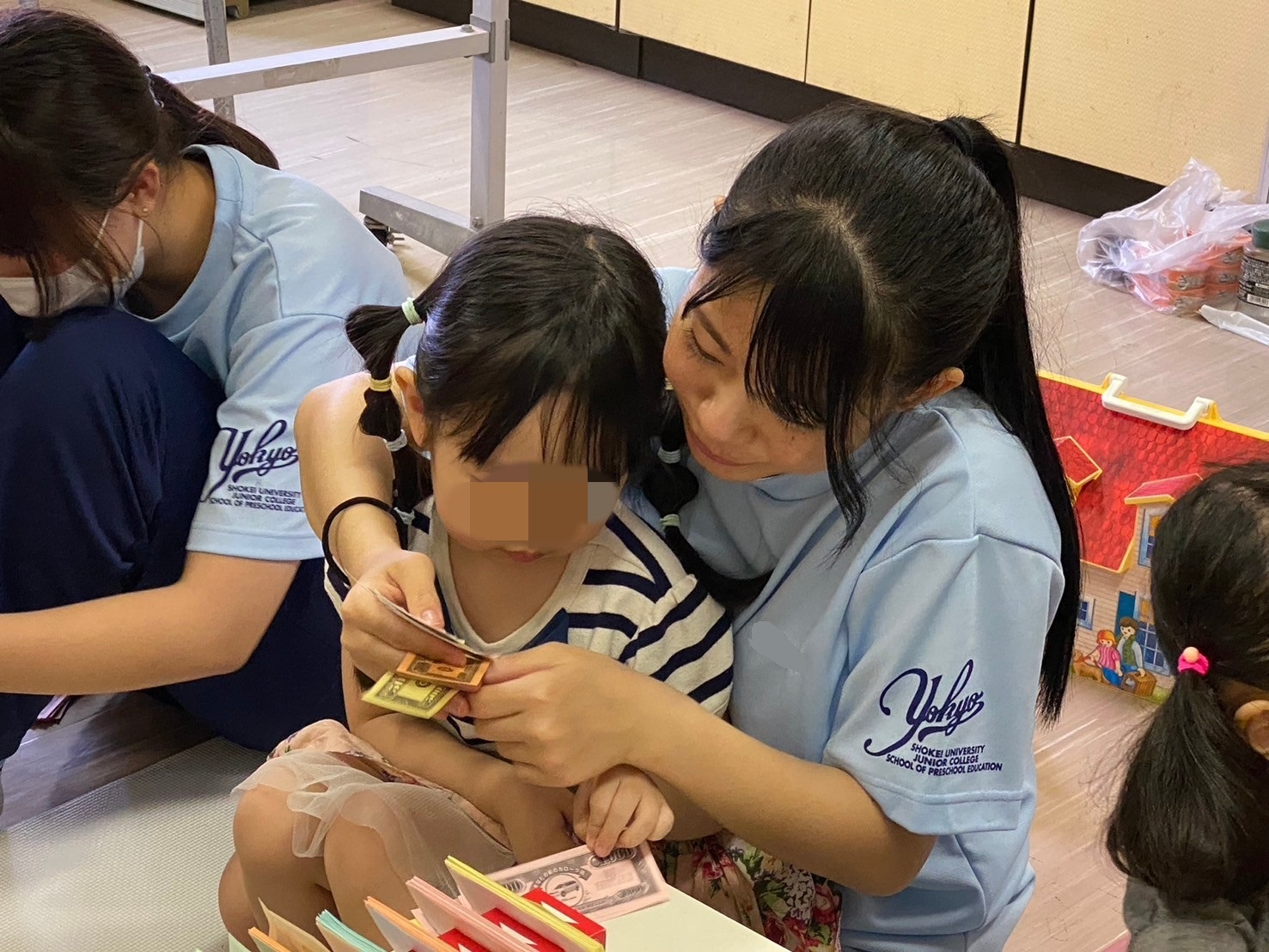 5月26日(日)は、学生ボランティアも参加し、子ども達と遊びました。親や先生だけではないさまざまな関わりは子ども達にとって大切な機会です。保育を学ぶ学生達が、子どもの思いに耳を傾け、話をしたり、一緒に遊んだりと、つかの間の時を楽しみました。