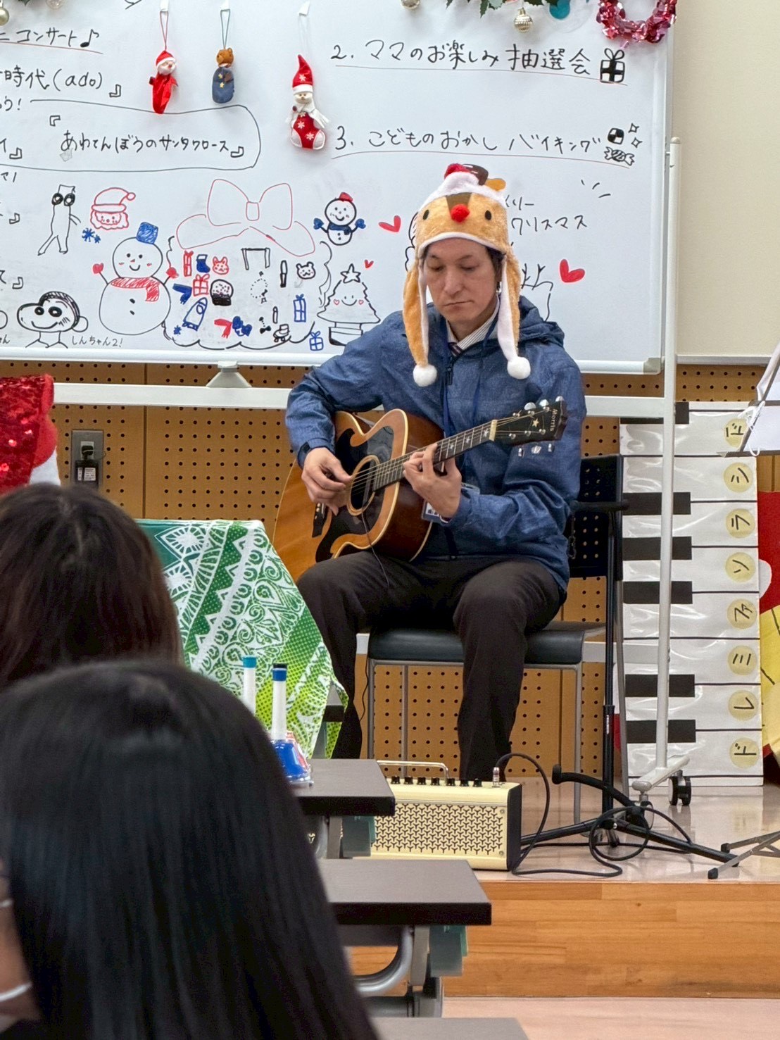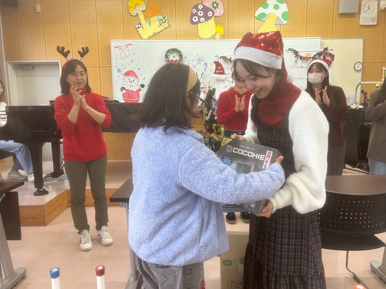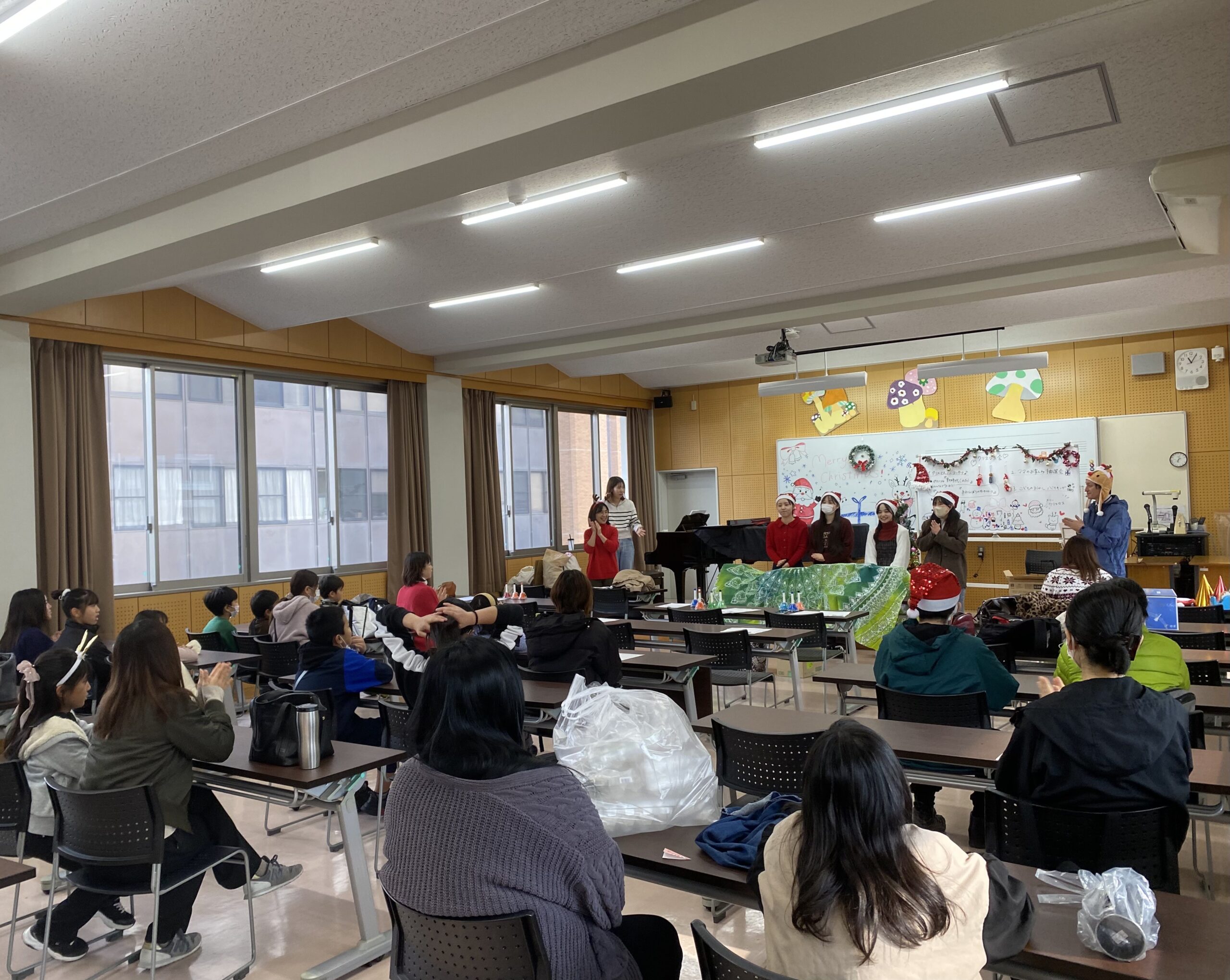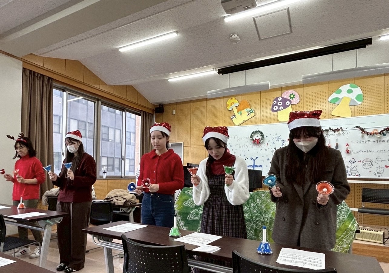 12月21日(日)は、「子育てcafé」でクリスマス会を企画いたしました。増淵ゼミの学生によるハンドベルと山口先生のギター演奏があり、サンタさんからささやかなプレゼントもありました。子どもたちはもちろん、保護者、そして子育てCaféに関わるスタッフ一同が楽しみました。