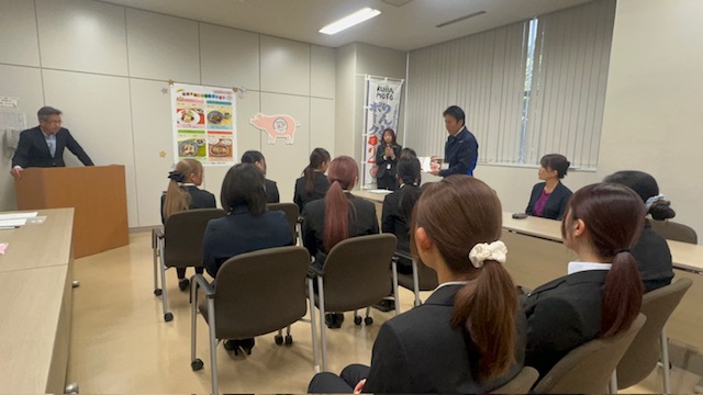 今年度は、「豚肉(りんどうポーク)」をテーマに応募総数186点の中からグランプリ1名・優秀賞3名・入選5名が表彰され、受賞者の皆さんには賞状と副賞(図書カード)が贈呈されました。また、今年度はりんどうポークをご提供いただいたJA熊本経済連の方々にもご列席いただき、受賞者へはりんどうポーク等の景品を贈呈していただきました。