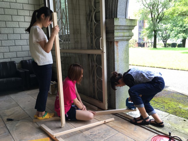 設計図書きにはじまり、材料の購入や組み立てまで全て自分達で行います。物の高さは3mもあり、試行錯誤しながら取り組んでいます。