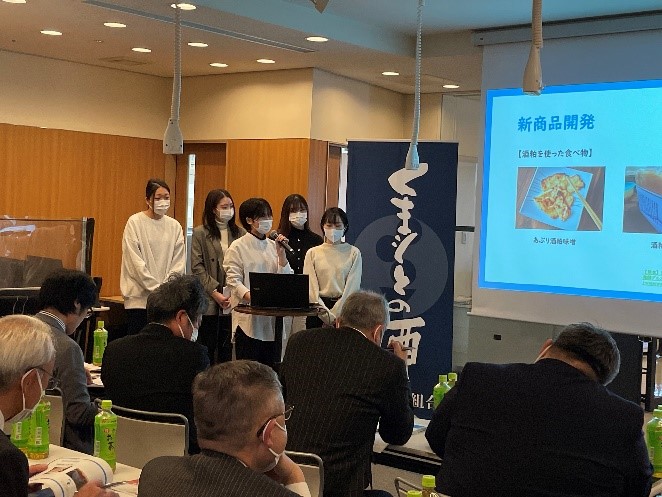 10月に熊本酒造組合によるオリエンテーションが行われ、酒蔵見学を経て、2月4日(土)に12チームによる最終プレゼンテーションが実施されました。本学部の3チームは、