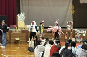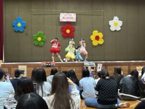 1日目(15日)は、体育館でバケラッタ(新聞紙や広告紙などを素材に制作した衣装によるファッションショー)や、学生の中に学長や教職員が混じりダンスを披露しました。また、ゲストライブとして熊本アイドル「POTION」さんが登場し、歌やダンスで会場を沸かせていただきました。