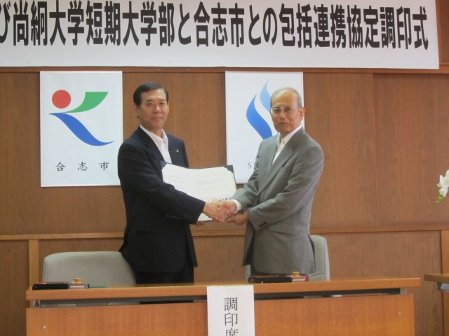 平成27年6月29日(月)午前10時より合志市役所において尚絅大学及び尚絅大学短期大学部と合志市との間で包括連携協定を調印しました。