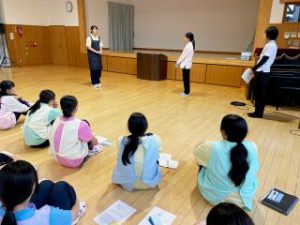 いよいよ実習も終わる頃、実習の締めくくりとして、「終わりのつどい」が行われました。「終わりのつどい」では、副園長先生や主幹保育教諭の先生より振り返りの機会をいただき、学生たちがそれぞれの学びや気づきを共有しました。学生たちがしっかりと学んでいた様子について、先生方からお褒めの言葉もいただきました。最後に、学生代表がお礼の言葉を述べて「終わりのつどい」は終了しました。