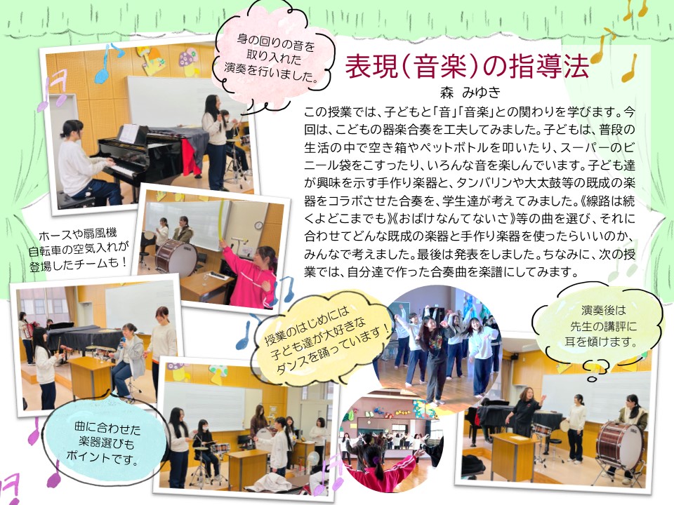 今回は、2年次後期に開講される「表現(音楽)の指導法」についてご紹介します♪