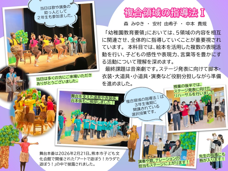 複合領域の指導法Ⅰはこども教育学部の独自科目で3年生後期に開講されている選択授業です。