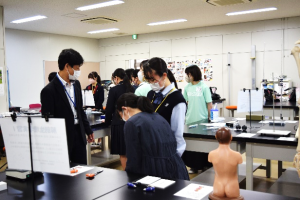 普段の授業で使用している実習室をツアー形式で見学しました。教員や在学生から、実際にどのような講義や実習を行っているのか具体的な説明がありました。