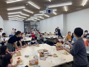 8月11日に「ヴォルターズキッチン」で食育企画「親子で簡単♪デコレーション」が実施されました。学生と子どもたちがチームを組んで買い出しに行き、その食材を使ってシフォンケーキをデコレーションしました。楽しく会食しながら、子どもたちと一緒に食について学び合う時間を過ごしました。