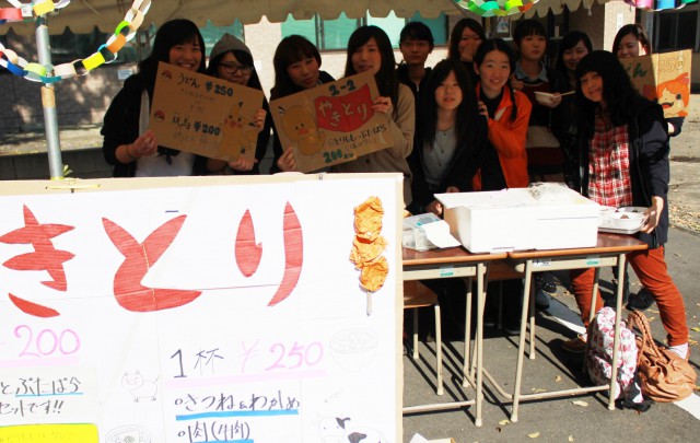 生活科学部では、栄養士・管理栄養士の卵たちが、ラスク(4種)、パウンドケーキ(2種)、豚丼、焼き鳥、うどん、だご汁、炊き込みごはん等を販売しています。販売価格も100~250円と、とってもお手頃ですので、みなさん食べにきてくださいね。
