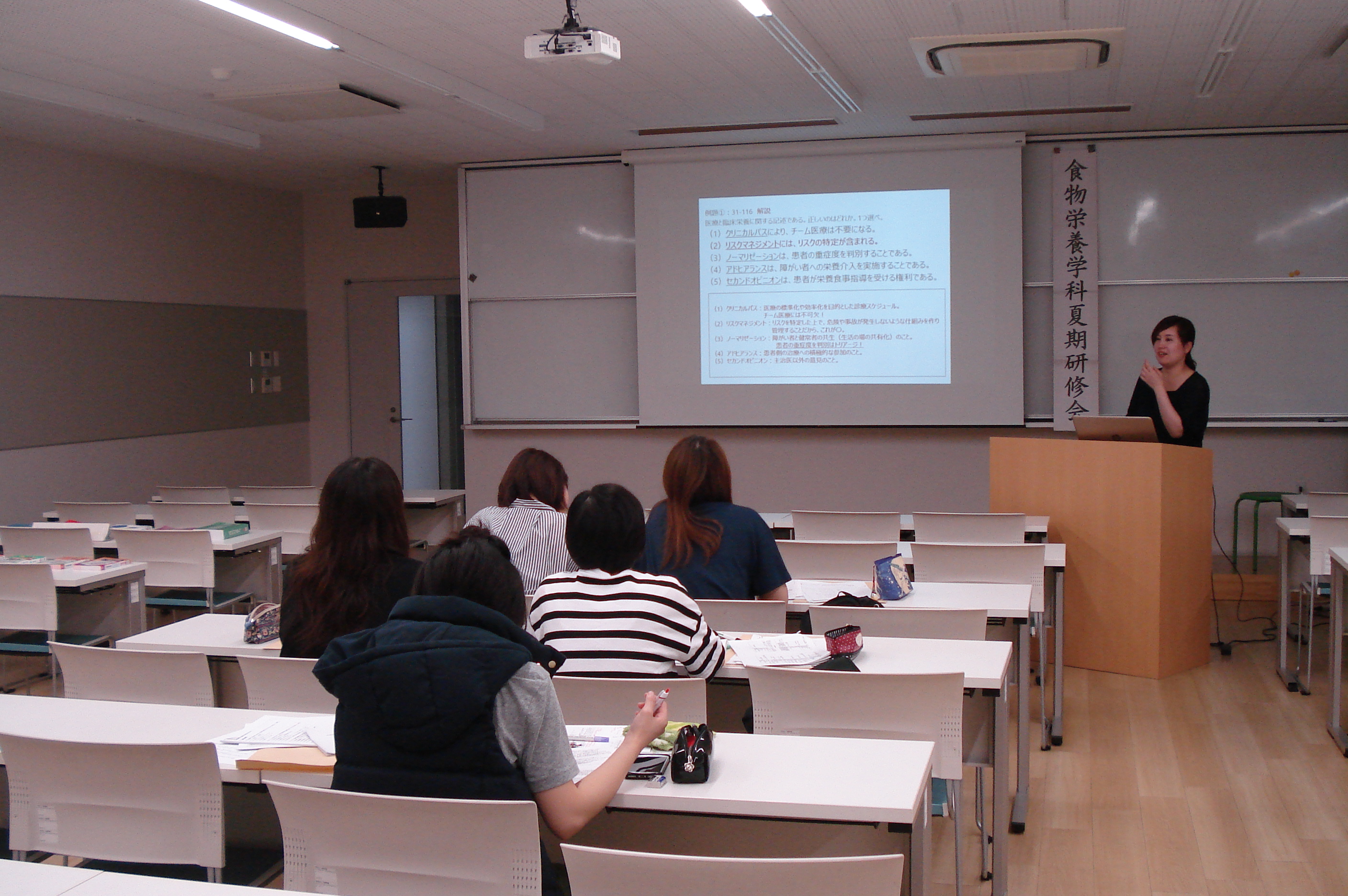 管理栄養士を目指す方々を対象として、9月14日(金)に「第31回食物栄養学科夏期研修会」が開催されました。この研修会は、日頃からの学習内容・成果の確認や動機づけの強化を目的として、毎年、開催されています。本年度は、下記の内容で行われました。加えて、管理栄養士国家試験の出題基準(ガイドライン)の説明や過去の国家試験問題の解説なども行われました。