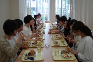 | 毎年恒例のランチ交流会の様子 | 夏期研修会オリジナルメニューです! |