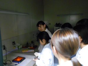 生化学実験ではこの他に、酵素に関する実験(唾液のデンプン分解酵素活性検出、果実のタンパク質分解酵素活性検出)、タンパク質に関する実験(血清からのグロブリンの精製、SDS-ポリアクリルアミドゲル電気泳動、ウェスタンブロット法)や核酸・遺伝子に関する実験(アルデヒド脱水素酵素遺伝子のPCR解析)などを行います。