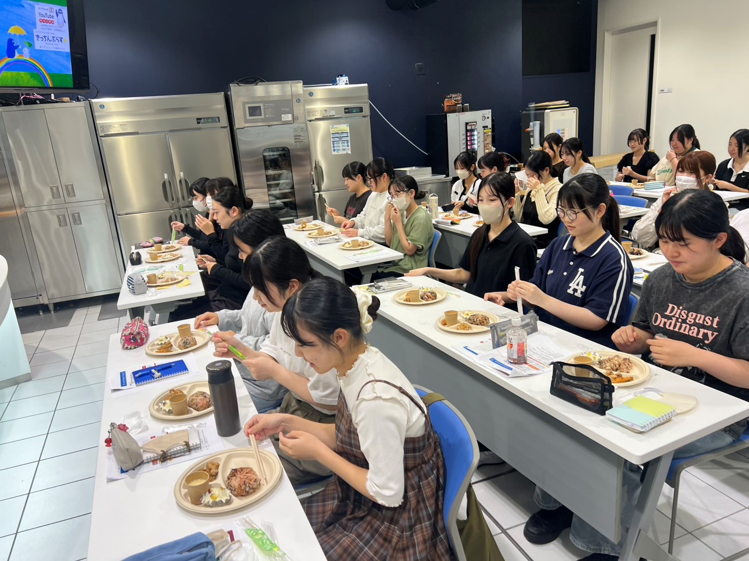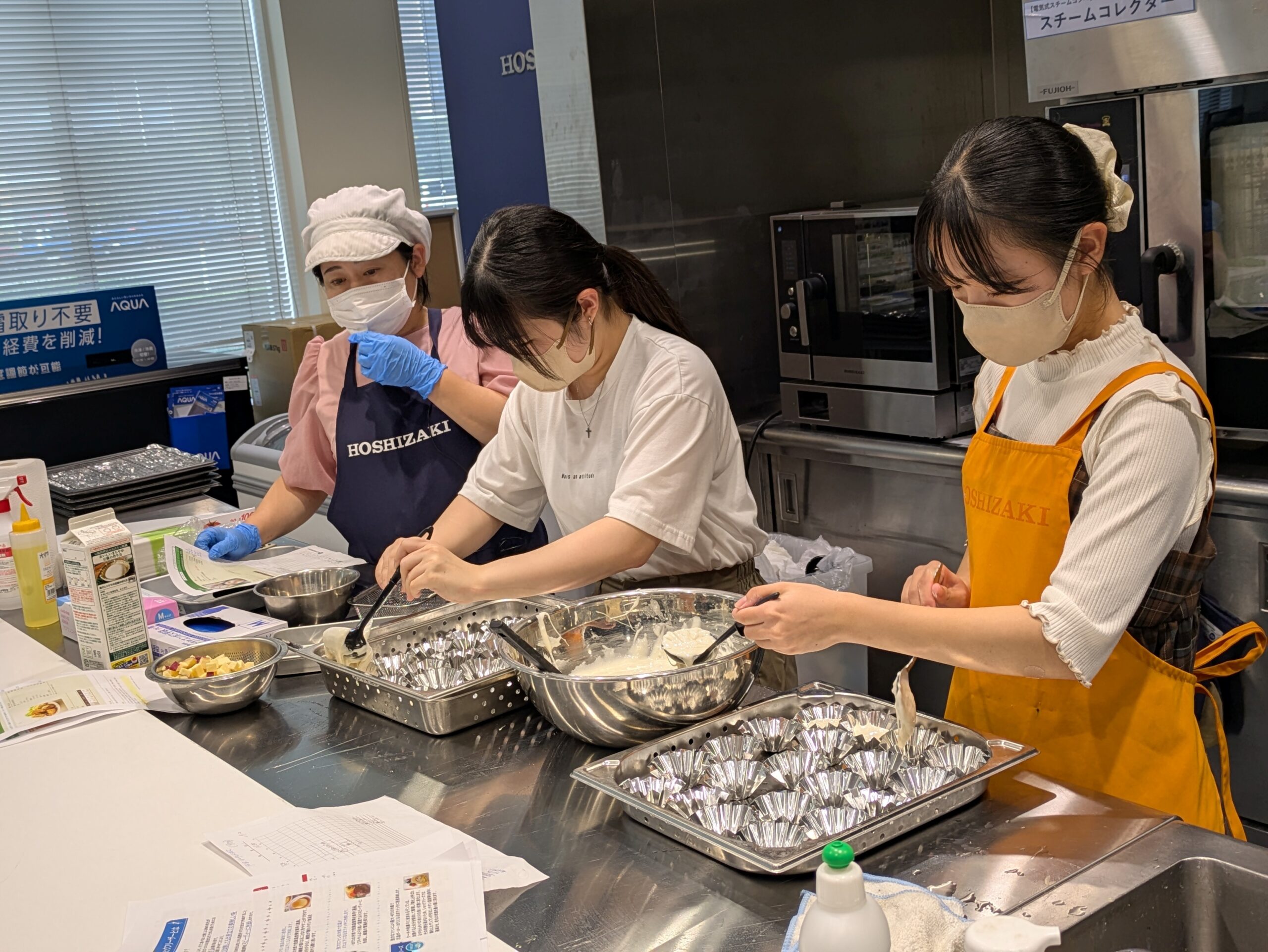 令和7年10月20日(月)、本田研究室、秋吉研究室、原田研究室および小林研究室に所属している学生29名が、ホシザキ南九株式会社のオープンキッチンで行われた調理実演カリキュラムに卒業セミナーの一環として参加しました!