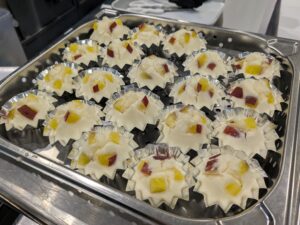①容器にプリン液を容器に流し込み、スチコンでスチーム加熱。