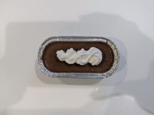 まず、実際に病院で働く栄養士の先生方にも人気の「クレームオショコラ」の作り方を教えていただきました。とても滑らかな口当たりで美味しく、簡単に作ることができ、常食から嚥下食まで形態を問わずみんなが同じ物を食べられるちょっと豪華なデザートです。クリスマスにもよいですね☆