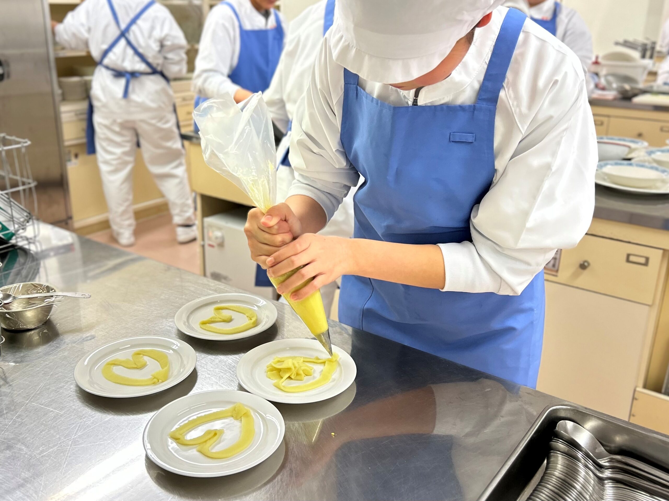 ハートやお花の形に楽しんで絞る姿が見られ、保育所ではこれを園児に体験させることで食育に活用できることを実感したようでした。