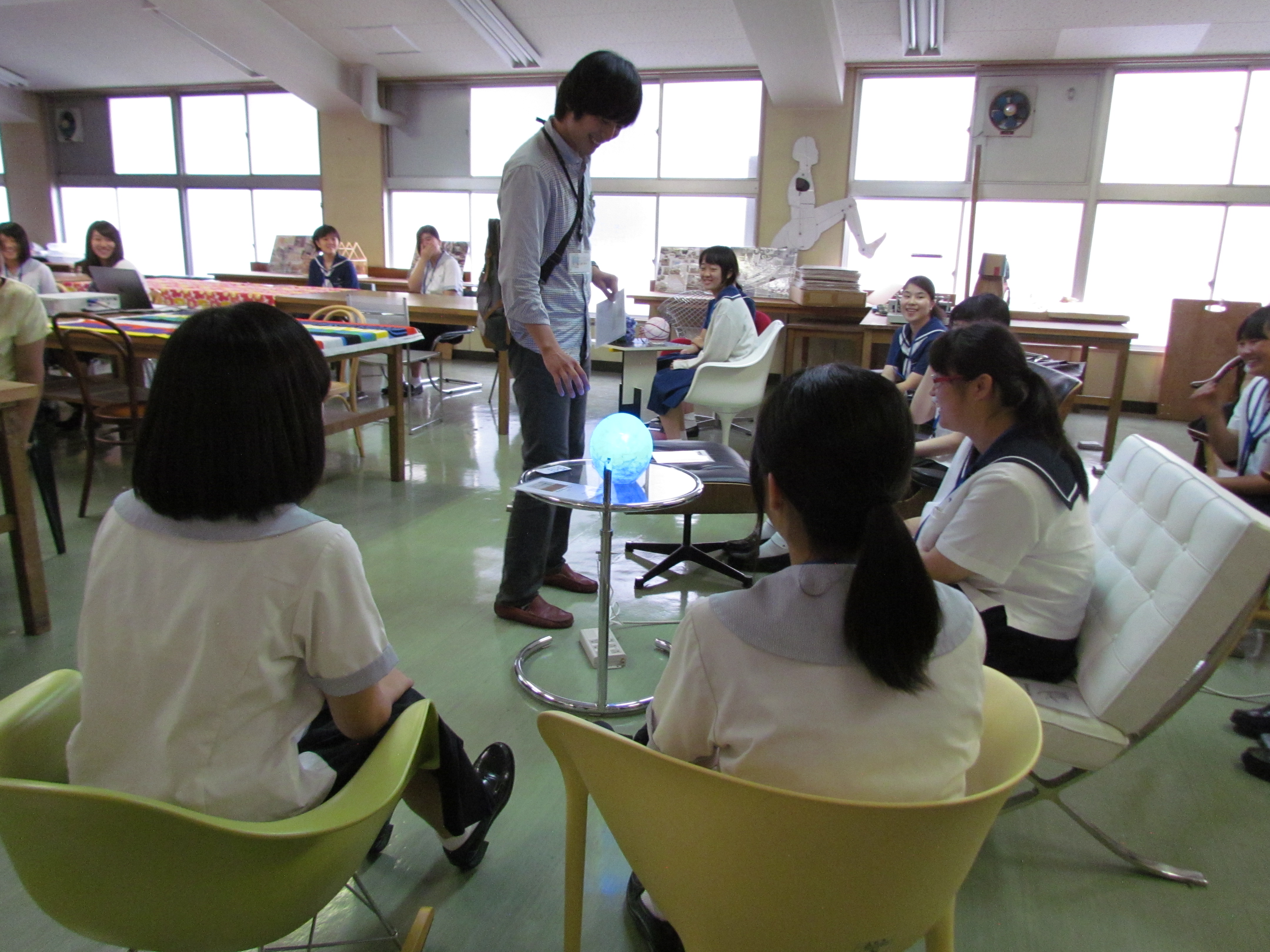 「生活デザイン」分野では、学生が制作している被服のご紹介をはじめ、インテリア演習室にある世界各国の椅子の試乗や学生が制作したランプの展示など多彩な催し物を見ていただきました。