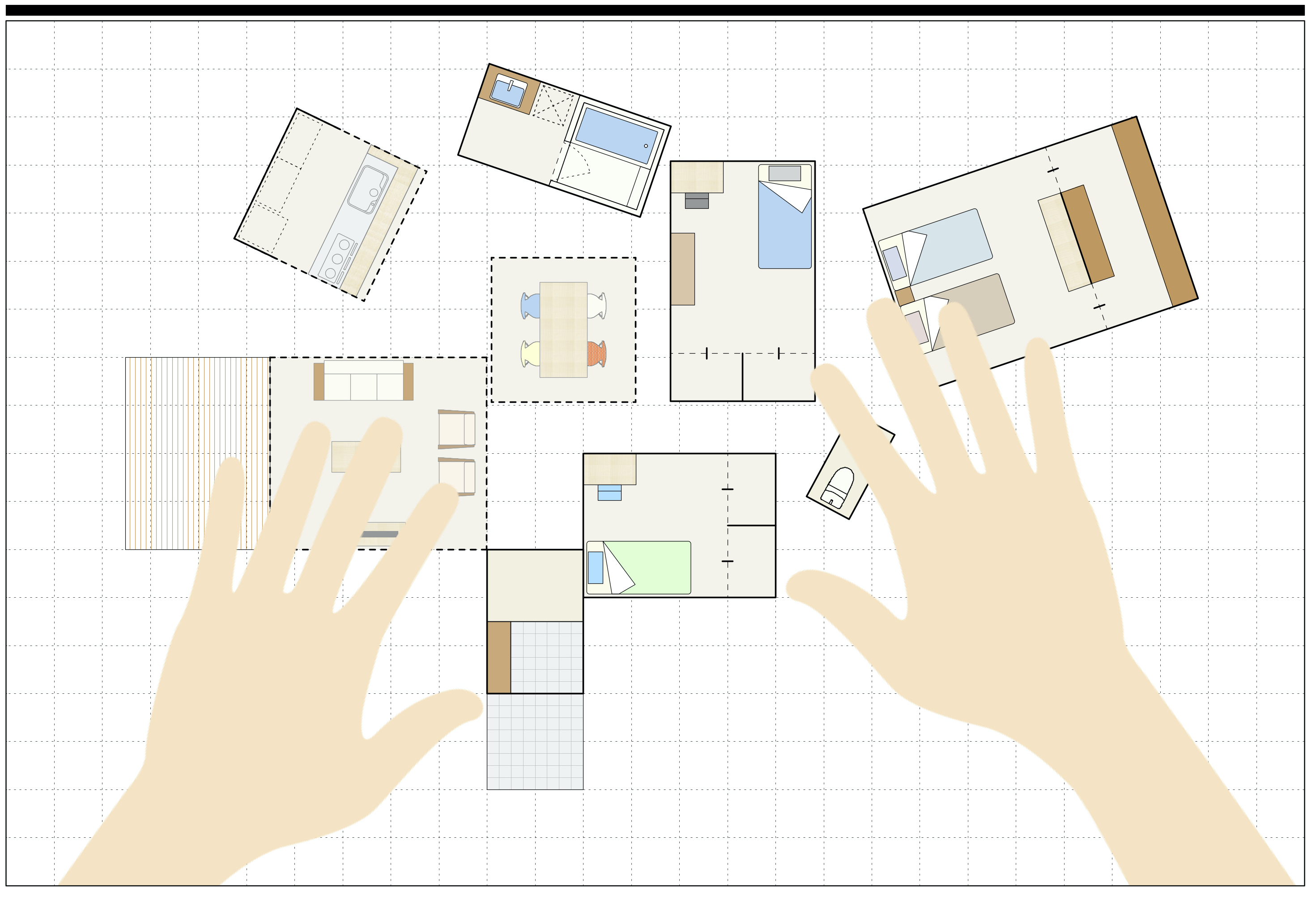 玄関、リビング、寝室、洗面室、浴室などの住まいのパズルを使って考えるので、生まれて初めて間取りをつくる学生も簡単に楽しみながら間取りをつくることができました♪