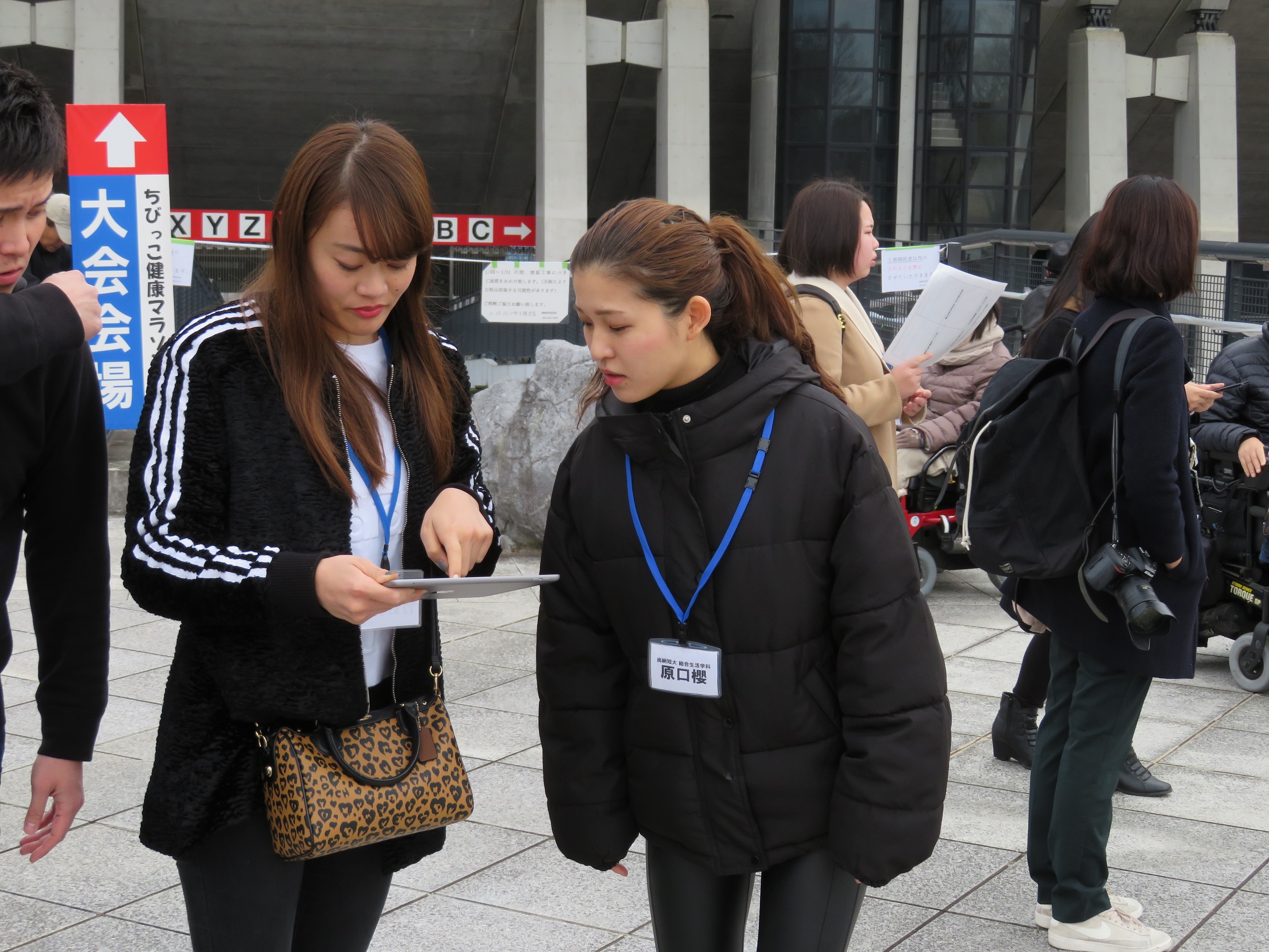 当日は総合生活学科学生53名が参加し、班に分かれてタブレットを活用した調査を行い、当事者目線でマップ作成に尽力しました。