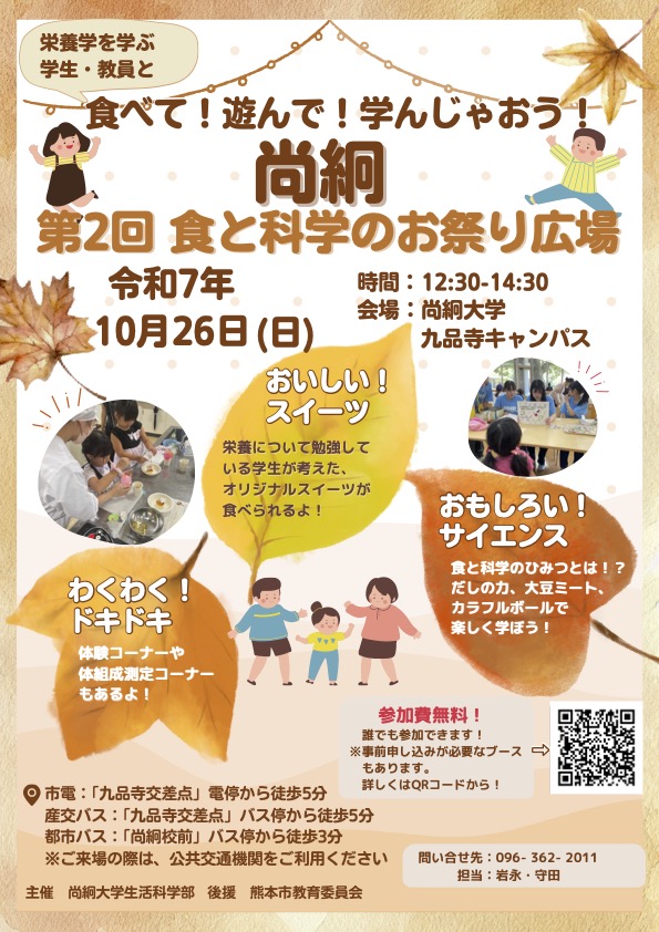 【生活科学部】食べて!遊んで!学んじゃおう!尚絅「食と科学のお祭り広場」を開催します