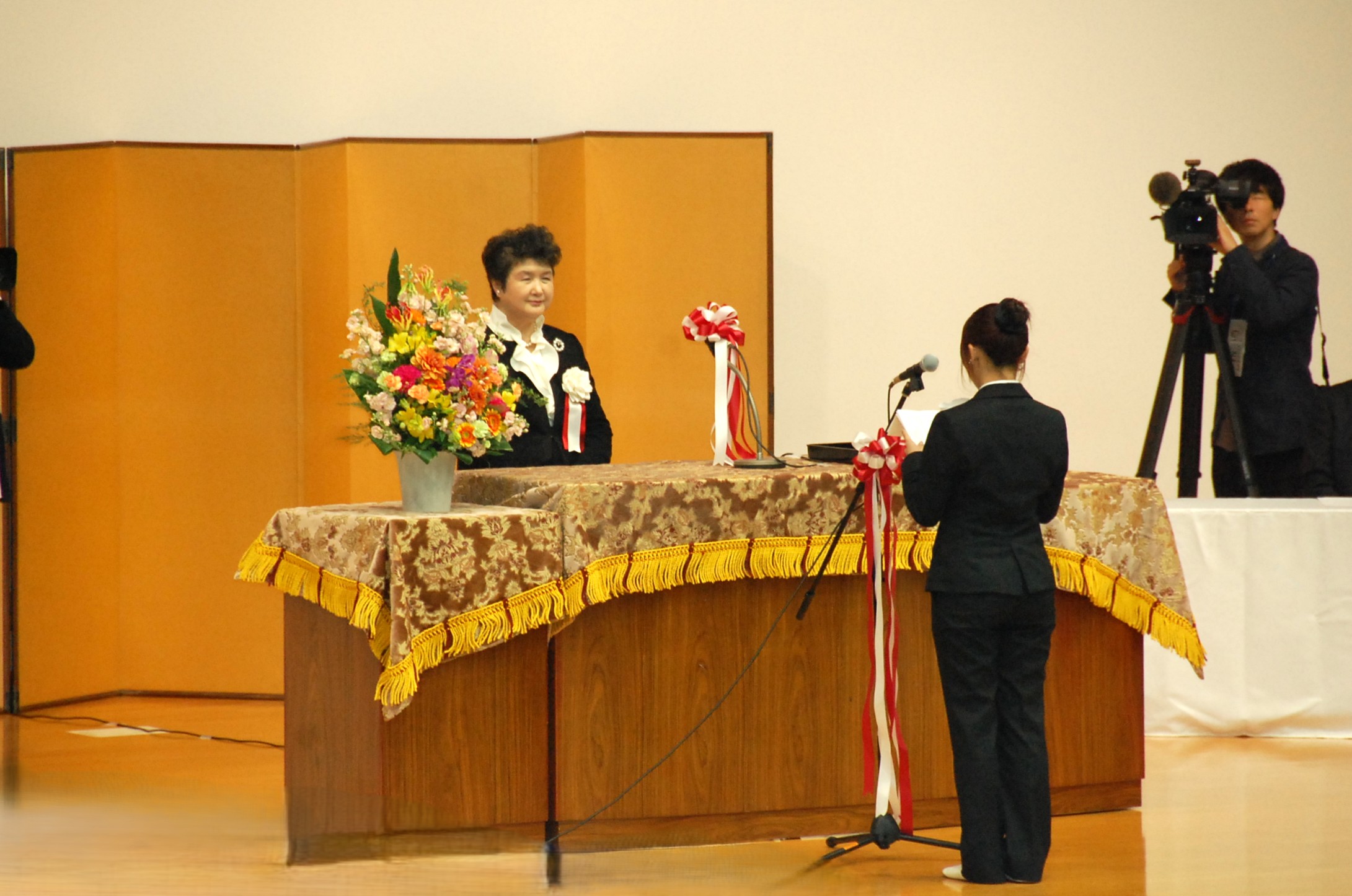 坂田学長による式辞の後、新入生を代表して短期大学部食物栄養学科1年 大久保 杏夏さんから希望に満ちた新入生宣誓があり、ご来賓の武元後援会会長から心温まる祝辞をいただいて、式は滞りなく終了しました。
