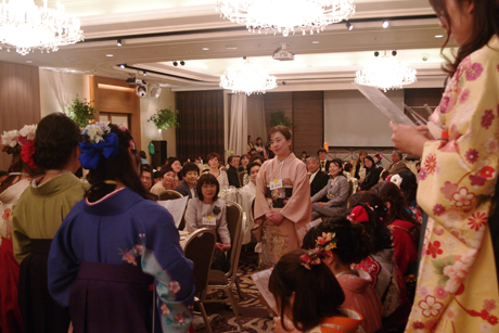 3月15日 卒業式の後に、熊本市のニュースカイホテルで、お世話になった先生方へ感謝の気持ちを表す謝恩会が開かれました。 各クラスからの出し物があり、2年間の思いを振り返りながら、歌や言葉で伝えました。 それからは先生方の出し物、ご退官される先生の挨拶、最後にクラス担任より卒業生へはなむけの言葉が送られ、笑いと涙、そして温かい雰囲気に包まれた謝恩会となりました。