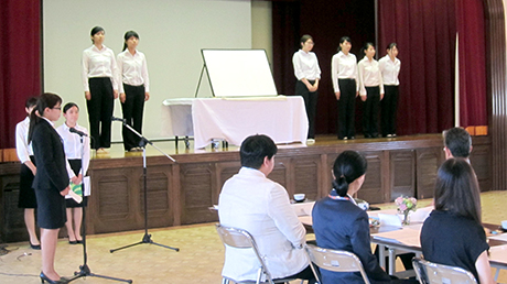 佐澤学科長のあいさつの後は、音楽表現コース・森ゼミの学生による発表で楽しんでいただきました。次に実習生は施設の先生方との実習に関する打ち合わせのオリエンテーションへと会は進んでいきました。