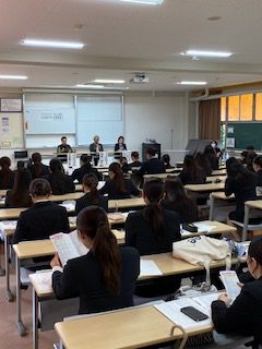 熊本県私立幼稚園連合会より、6名の園長先生に来校いただき、園のこと、福利厚生、給与、仕事内容、採用状況など学生からの多岐にわたる質問に対して、一つひとつ丁寧に答えていただきました。職業・職場理解が深まり、就職へのイメージもより具体的になったようです。お忙しい中、ご来校いただき、ありがとうございました!