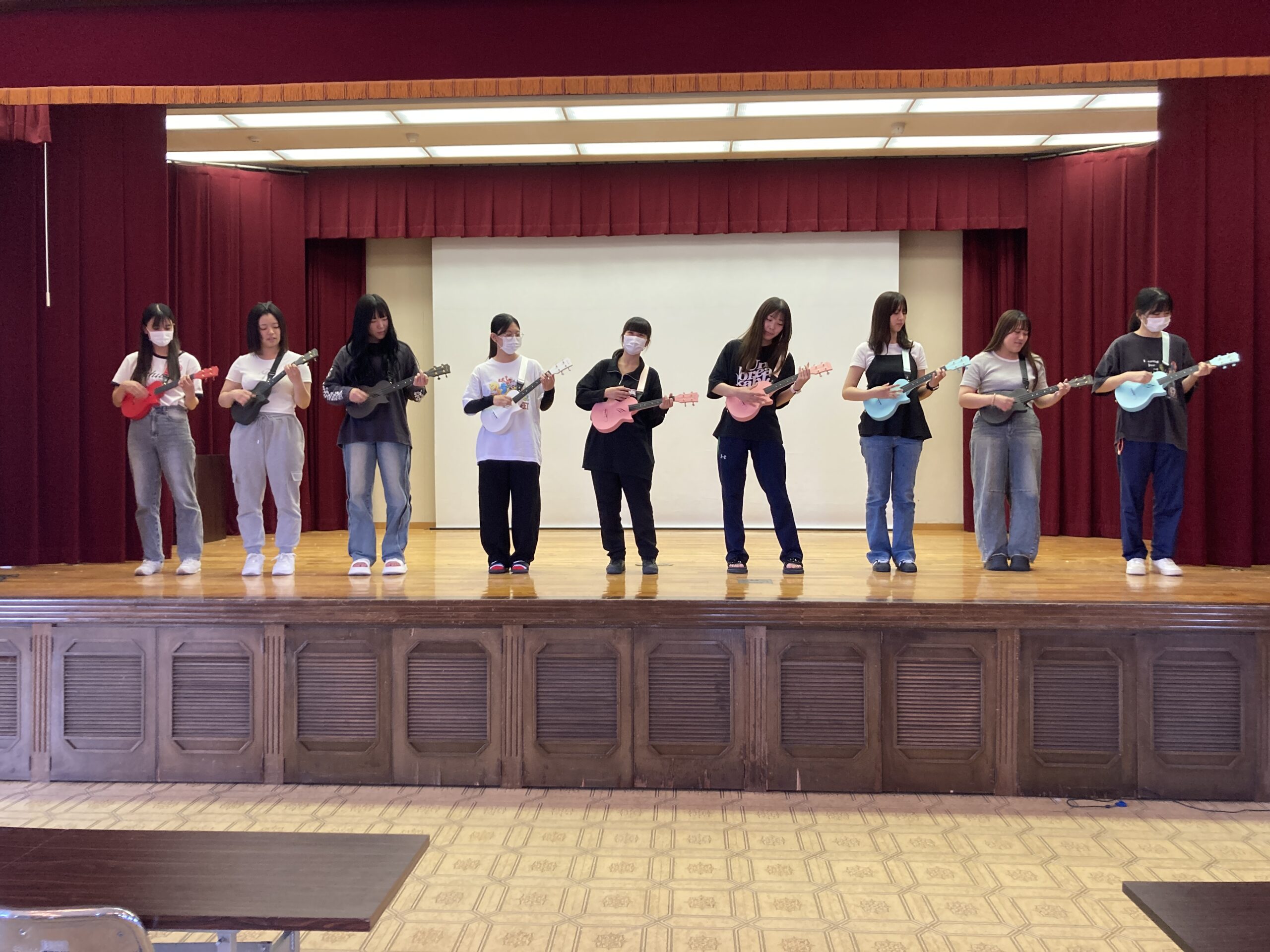 中山ゼミでは、中学校や高校でやったような合唱、小学校でやったようないろんな楽器を使った合奏、ギターやウクレレなどピアノ以外にも保育現場で活用できそうな楽器演奏等に取り組み、音楽が好きな保育士を育てるとともに、潤いのある大学生活の一助となることを目指しています。