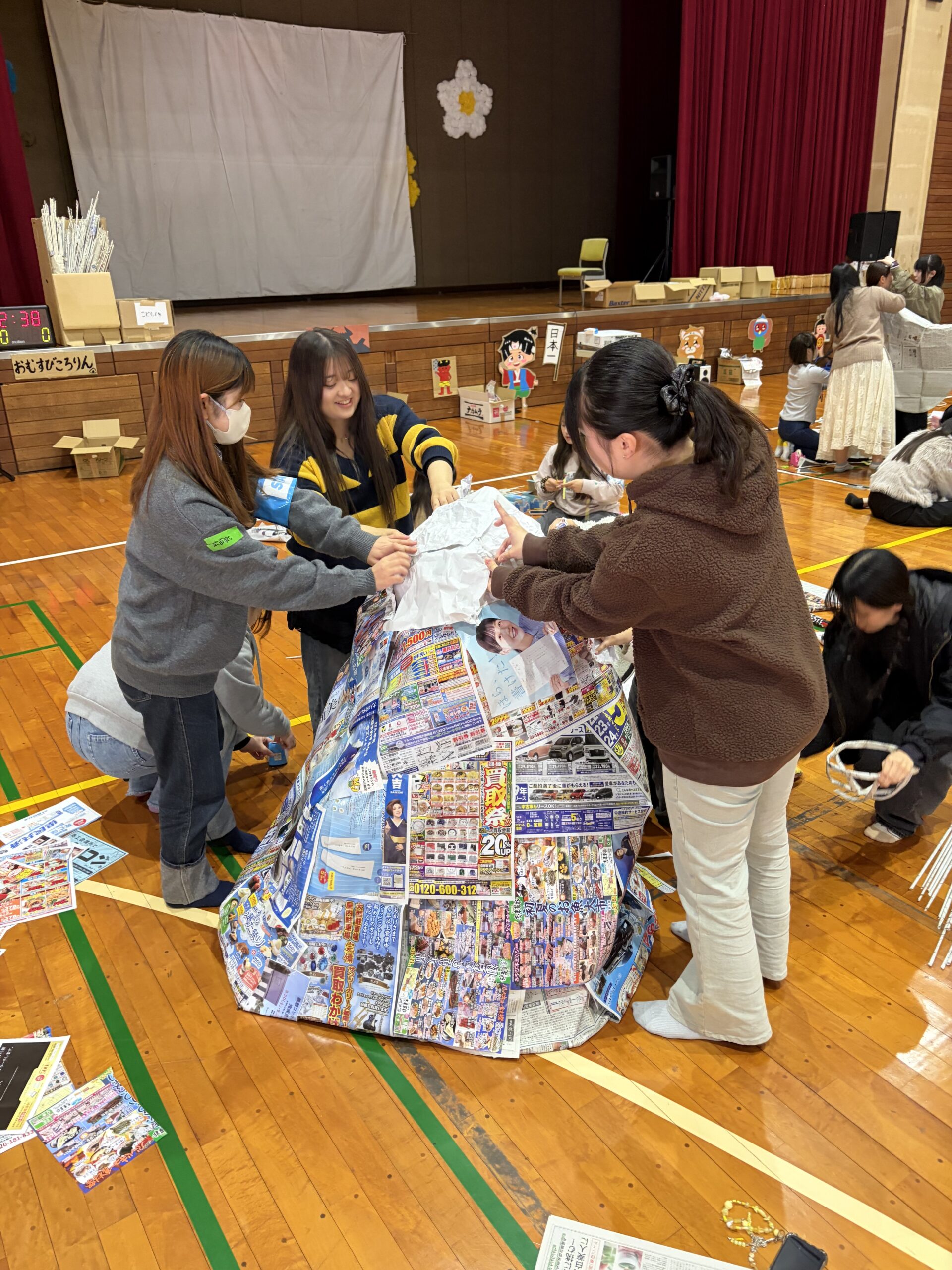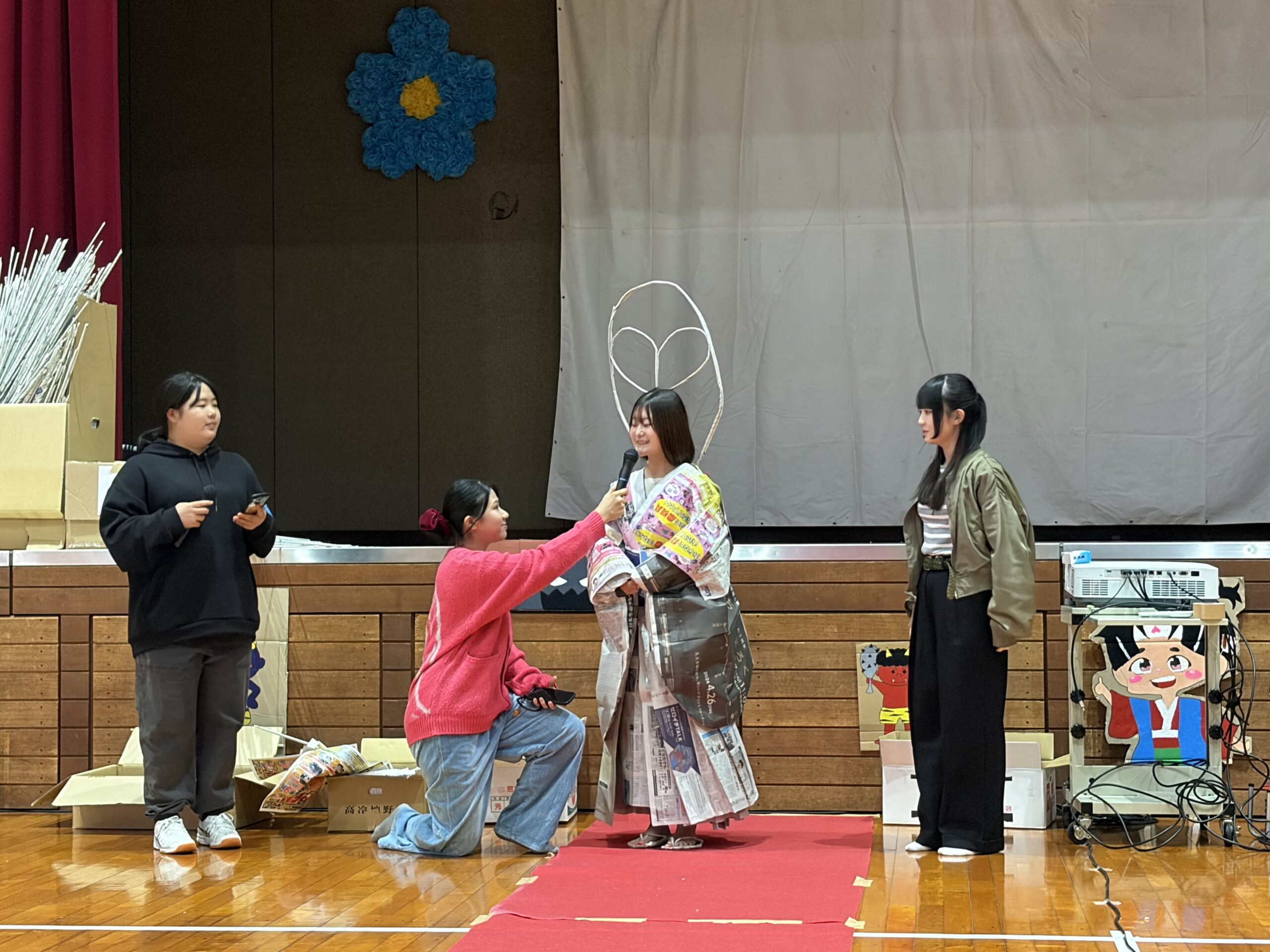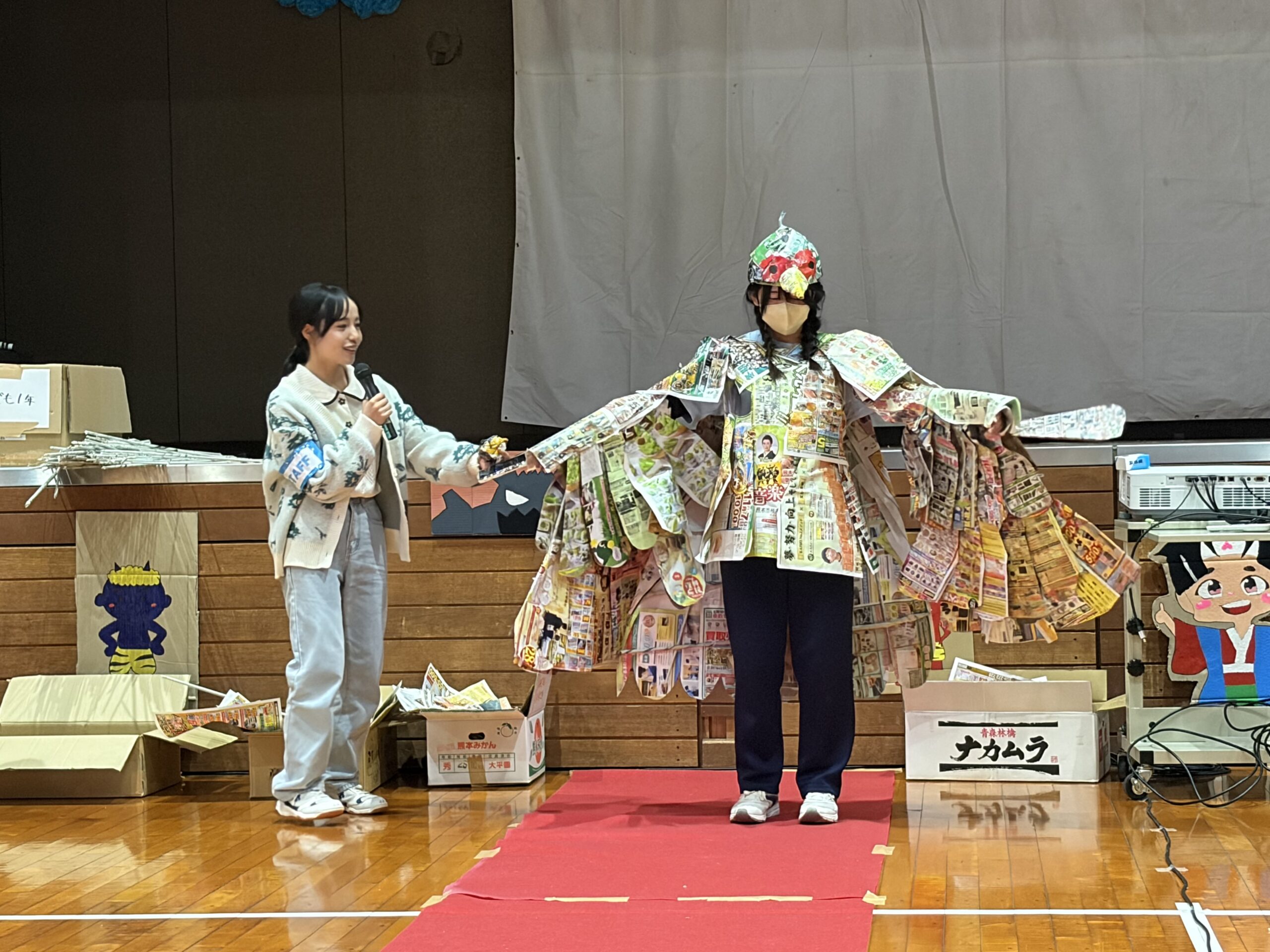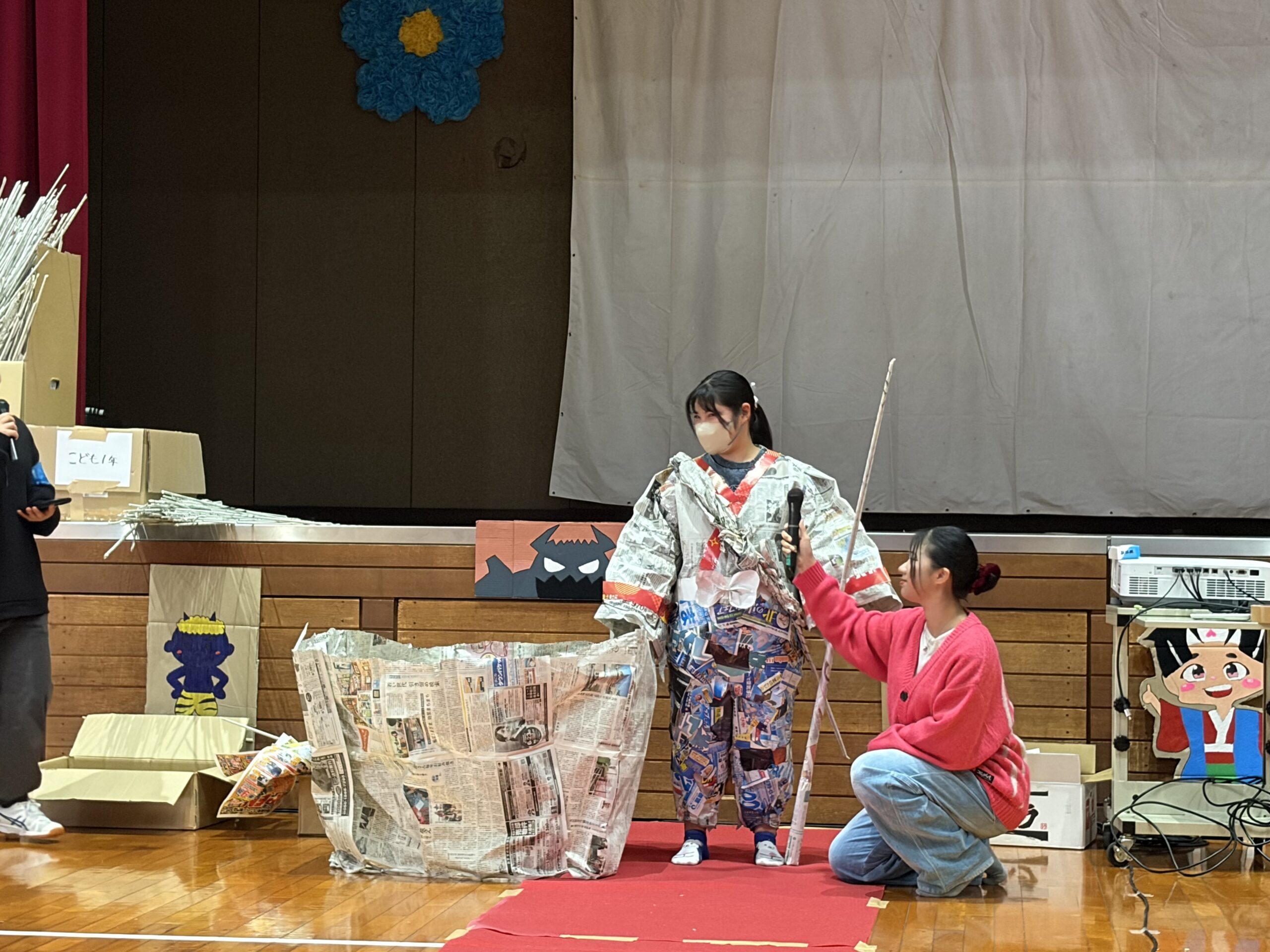 1日目のメインは、クラスごとの代表チームがテーマに沿った衣装を新聞紙でつくる「バケラッタ」です。バケラッタでは、新聞紙だけをつかってそれぞれのクラスが決めたテーマの衣装を作成します。今年のテーマは、「昔話」。クラスごとに協力して、素晴らしい衣装が出来ていました!