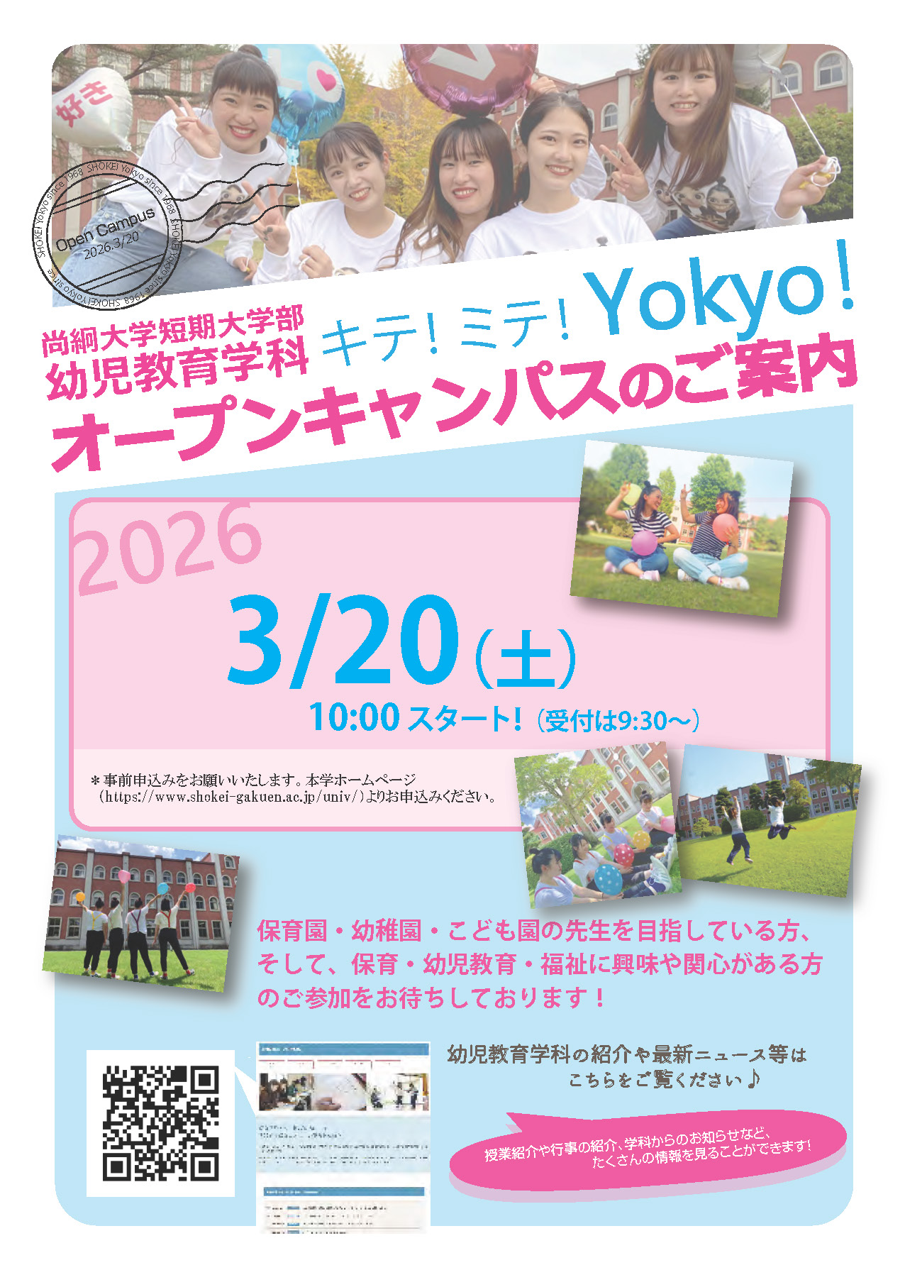 【幼児教育学科】オープンキャンパス(3月20日)のご案内