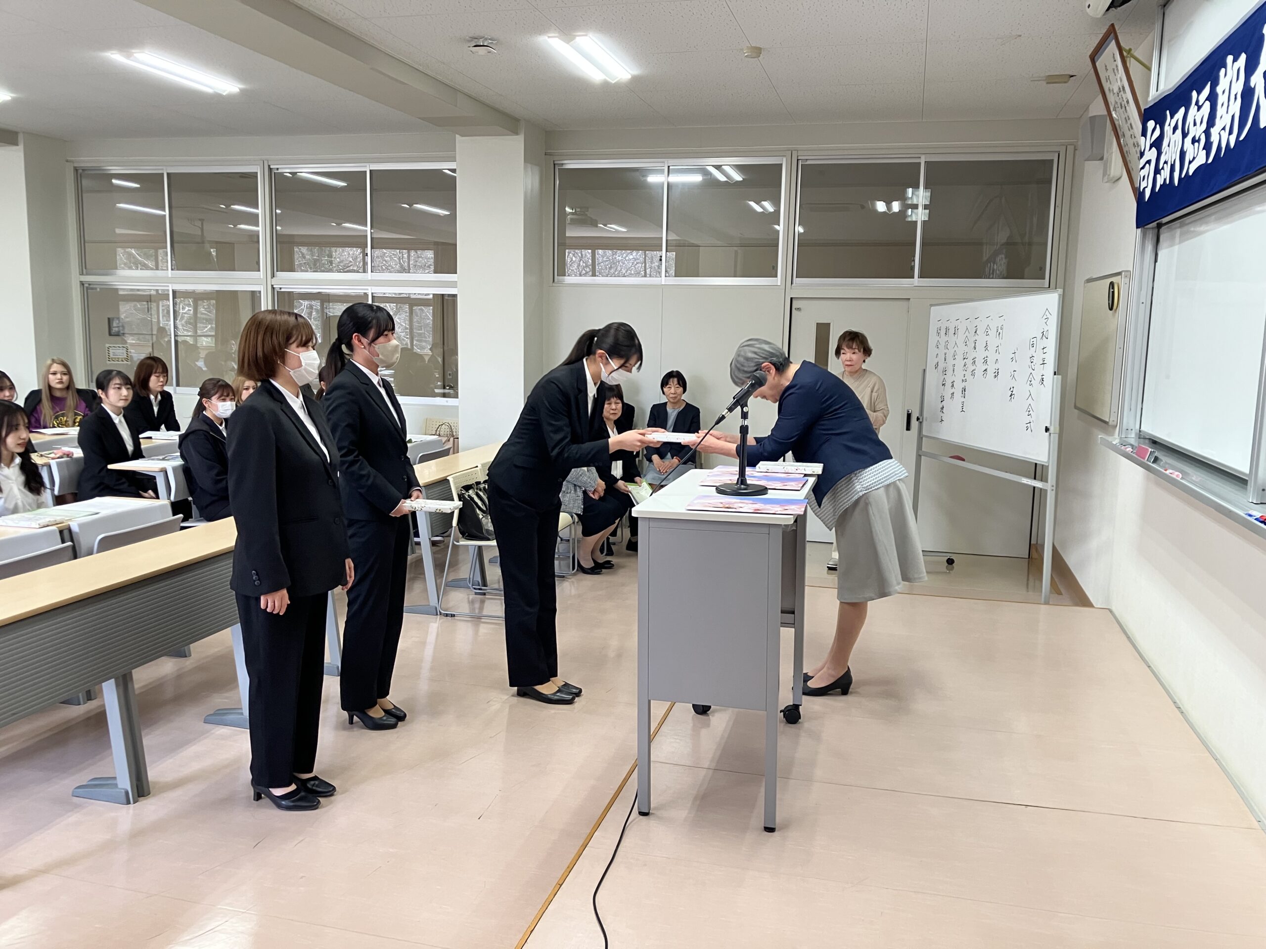 さらに、必要書類の記入・回収やレポート等の返却も行われ、学生たちは卒業に向けた最後の確認を行いました。