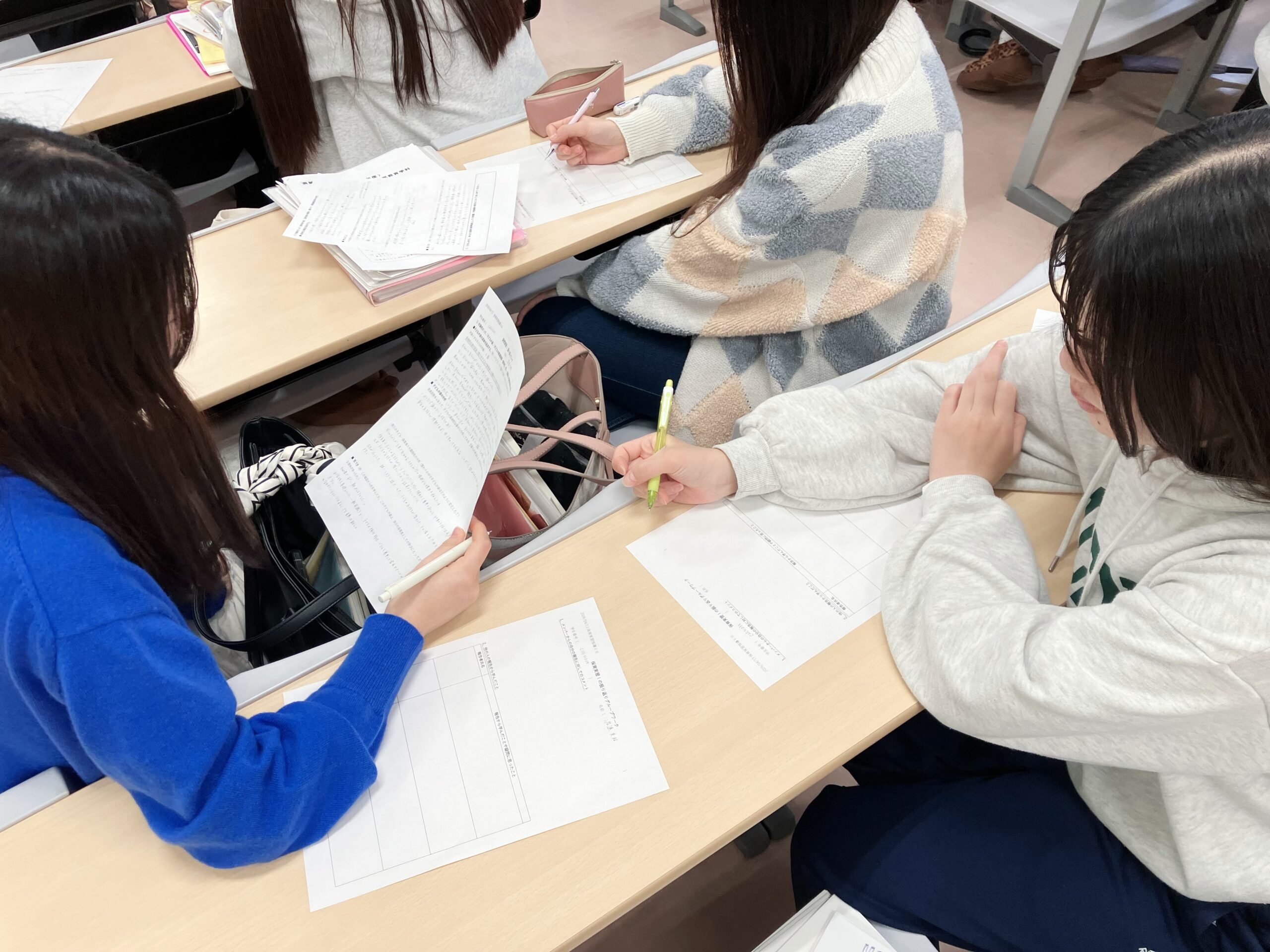 授業の後半ではグループワークも行い、保育実習Ⅰでの学びや気づき、今後の実習に向けた自分自身の課題について学生同士で共有しました。互いの経験に耳を傾けながら考えを深める、充実した時間となりました。