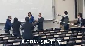 令和8年2月26日、本学では熊本中央警察署から2名の講師をお招きし、「防犯研修」を実施しました。本研修は、キャンパス内での不審者対応や避難誘導など、実践的な危機管理能力を高めることを目的として企画したものです。