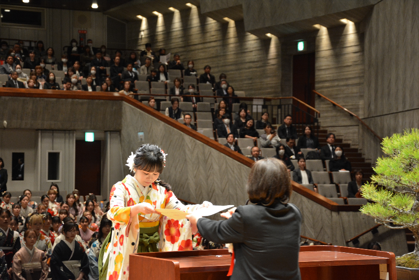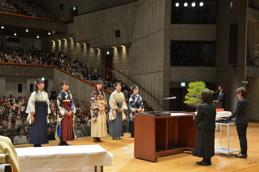 式典では、建学の精神を体し、学業成績が優秀で品行方正な卒業生に対する育英褒賞授与も行われ、各学部・学科から推薦された5名の卒業生が受賞しました。